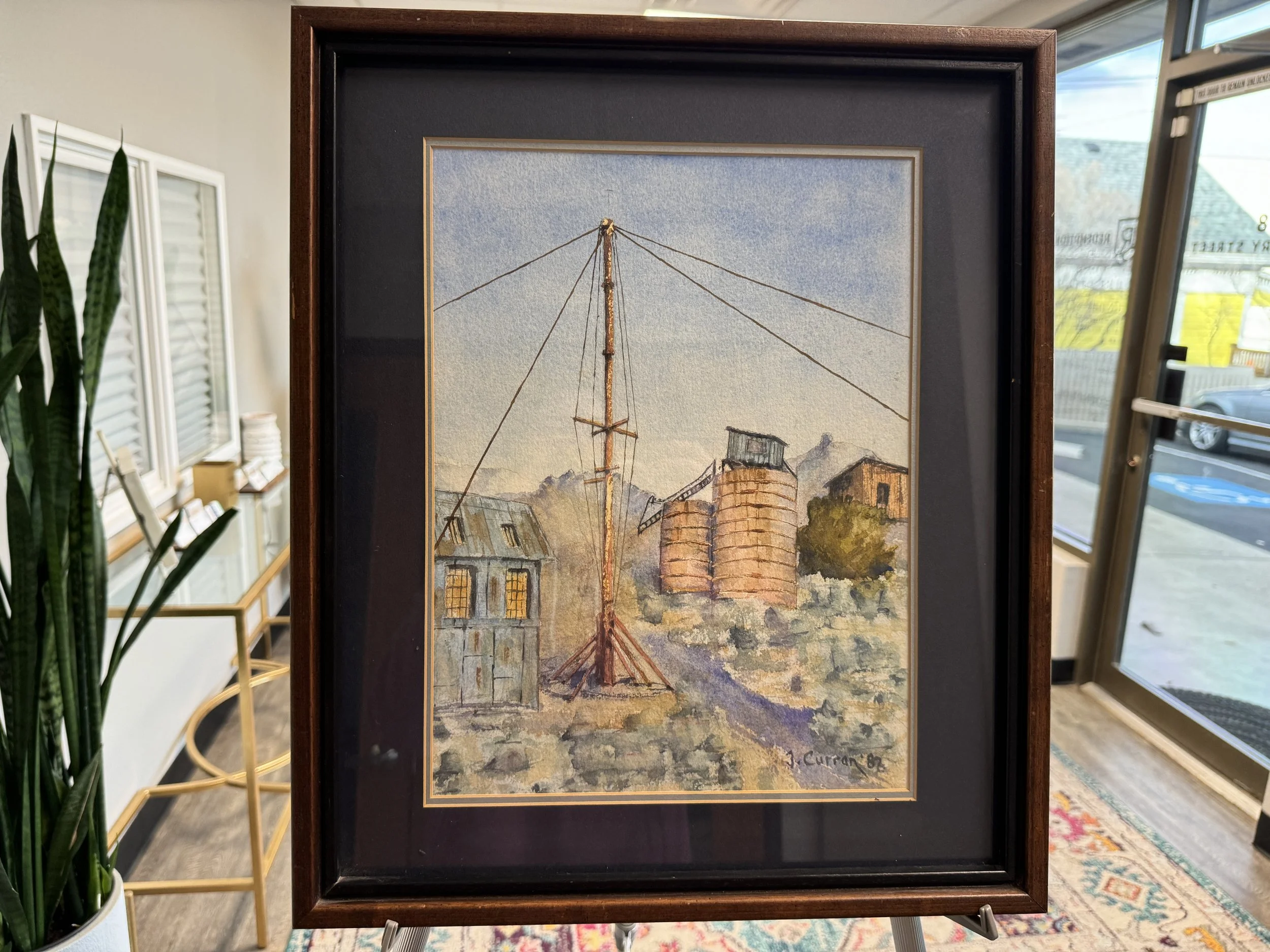 Back / Curran, J. Artist: Curran, J.Title: UntitledMedium: Oil on canvasDate: 1982Image Size: 11” x 14”Frame size: 16” x 19”Signature: Bottom right sideDescription: Scene in Dayton, Nevada.Price: $560